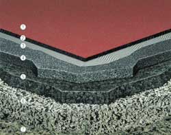 Sportan ODB: Pavimento ejecutado “in situ”, del tipo bicapa, la capa superior formada por gránulos de caucho sintético E.P.D.M. de color, ligados con resinas poliuretánicas monocom-ponentes, de 8mm de espesor. La inferior formada por una capa base de gránulos de caucho negro (SBR), ligados con resinas poliuretánicas monocomponentes, de 10mm de espesor. Indicado para todo tipo de instalaciones deportivas escolares y Municipales. |