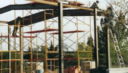 Edificio en Hospitalet Participación en esta obra como Industrial en construcción y montaje de estructuras metálicas, forjados de techo, cubiertas, canales curvas y cierres laterales en chapa corten. Fabricación y montaje de puertas de corredera.
