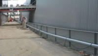 Obra Comsa Sant Cugat. Fabricacion de barandillas en serie para parking edificio Banco Sabadell, incorpora 1200 m con zonas curvas, luminarias integradas en tubo de defensa, y variantes para accesos.